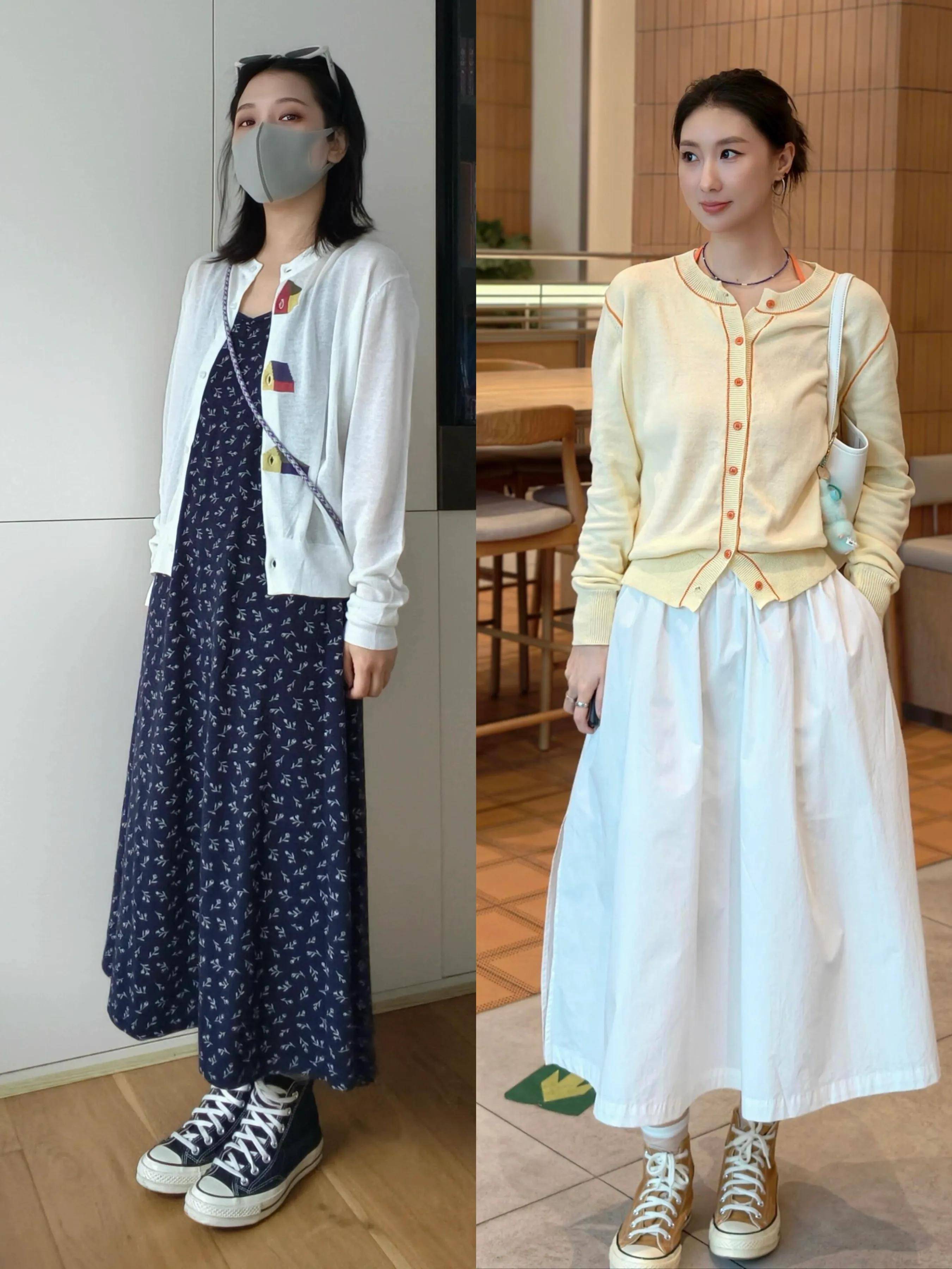 Tips⑤:帆布鞋+针织开衫和伞裙,更温柔