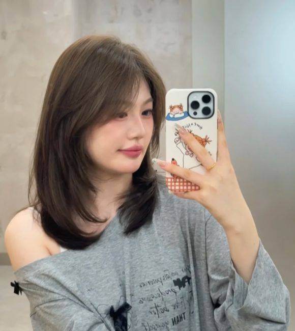 圆脸的特征是面部长度与宽度接近,下颌线柔和,整体缺乏棱角。修饰的关键在于增加纵向延伸感,削弱两侧的膨胀感。首选方案是“层次锁骨发”。