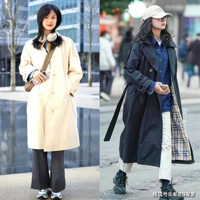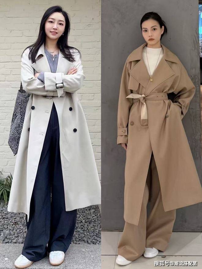 第一部分:“风衣+阔腿裤+运动鞋”的穿搭时髦极了,比紧身裤更耐看