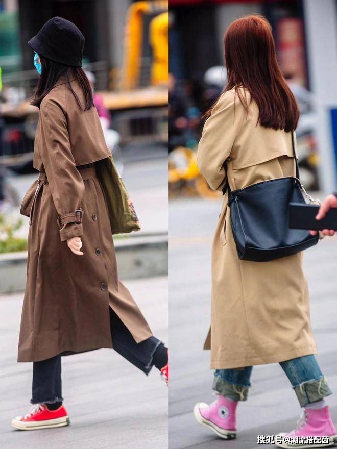 帆布鞋也是搭配风衣的不错选择,上面说到的运动鞋,太过于不精致,而且运动感太强了,但是帆布鞋就不会,它偏向休闲风格,但是又不失那种端正感,所以搭配风衣也是没有问题的,喜欢舒适穿搭的女性,可以试试帆布鞋搭配。如果你的裤子很长,那么就搭配低帮的帆布鞋,如果你的裤子是短款或者是九分的,那么可以搭配高帮的帆布鞋,这是最经典的搭配法则了。