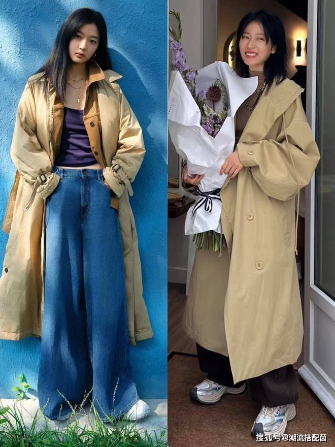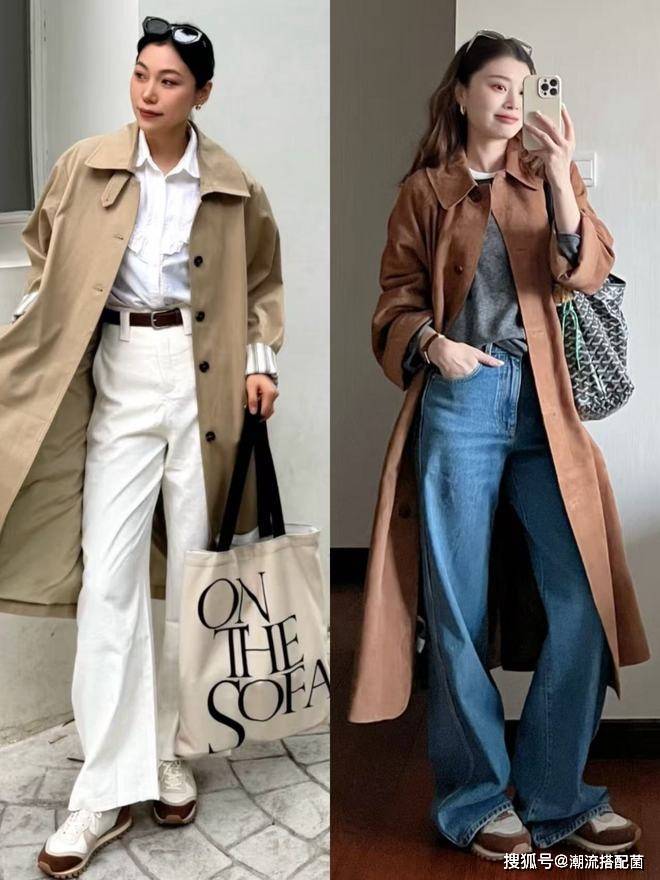 tips1.风衣挡风不闷热,阔腿裤遮腿不紧绷,早春穿刚好