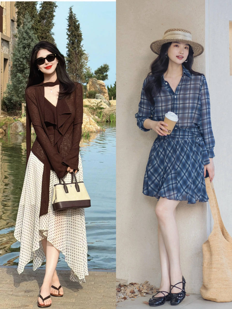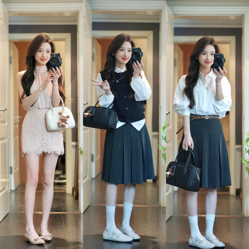 或是换成一套格纹设计的衬衫裙子,配上一双黑色的玛丽珍鞋,头戴一顶宽檐帽,穿出门上班、逛街、约会、旅游、拍照都很出片,多场景适配。