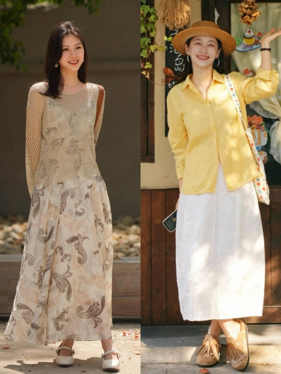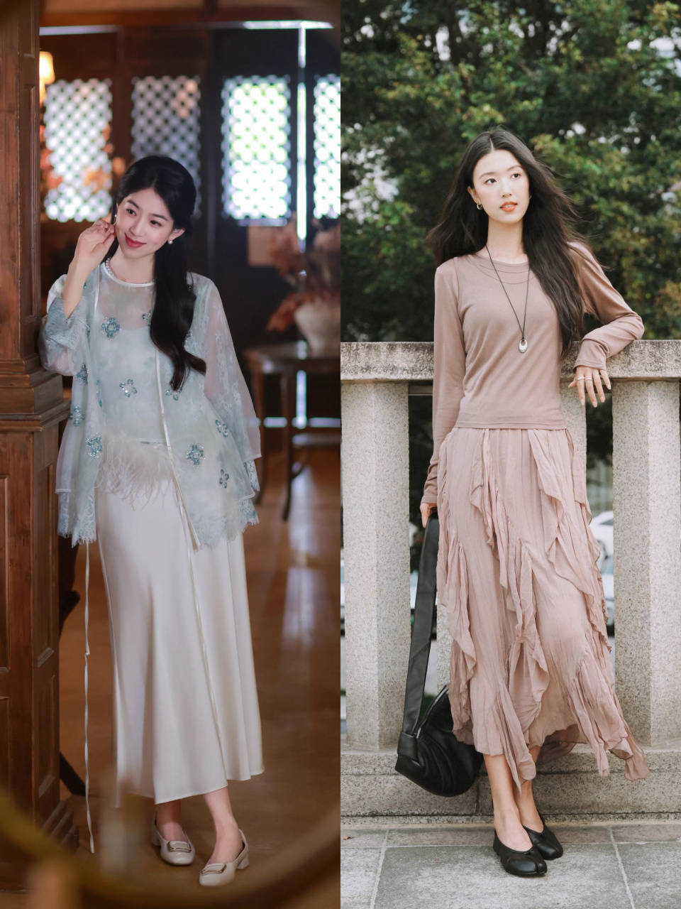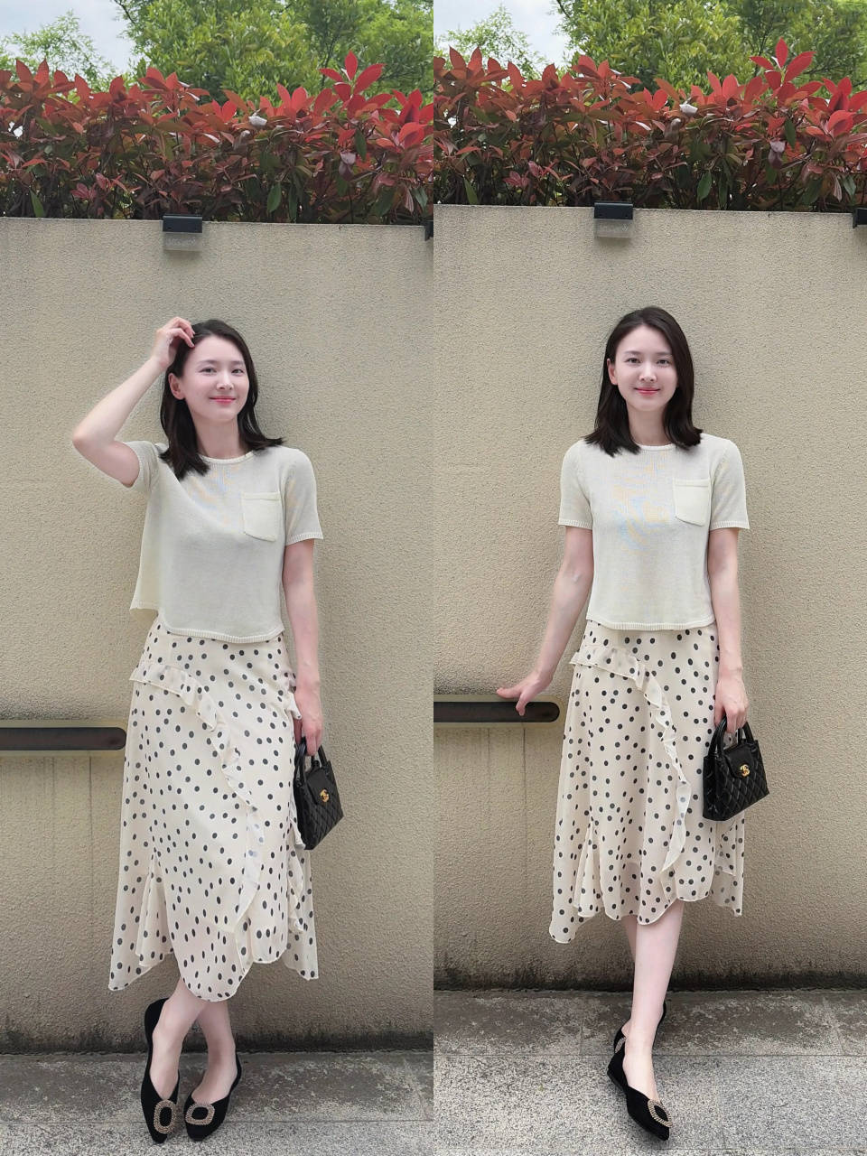top②:春夏穿“半裙+低跟鞋”,打破呆板感