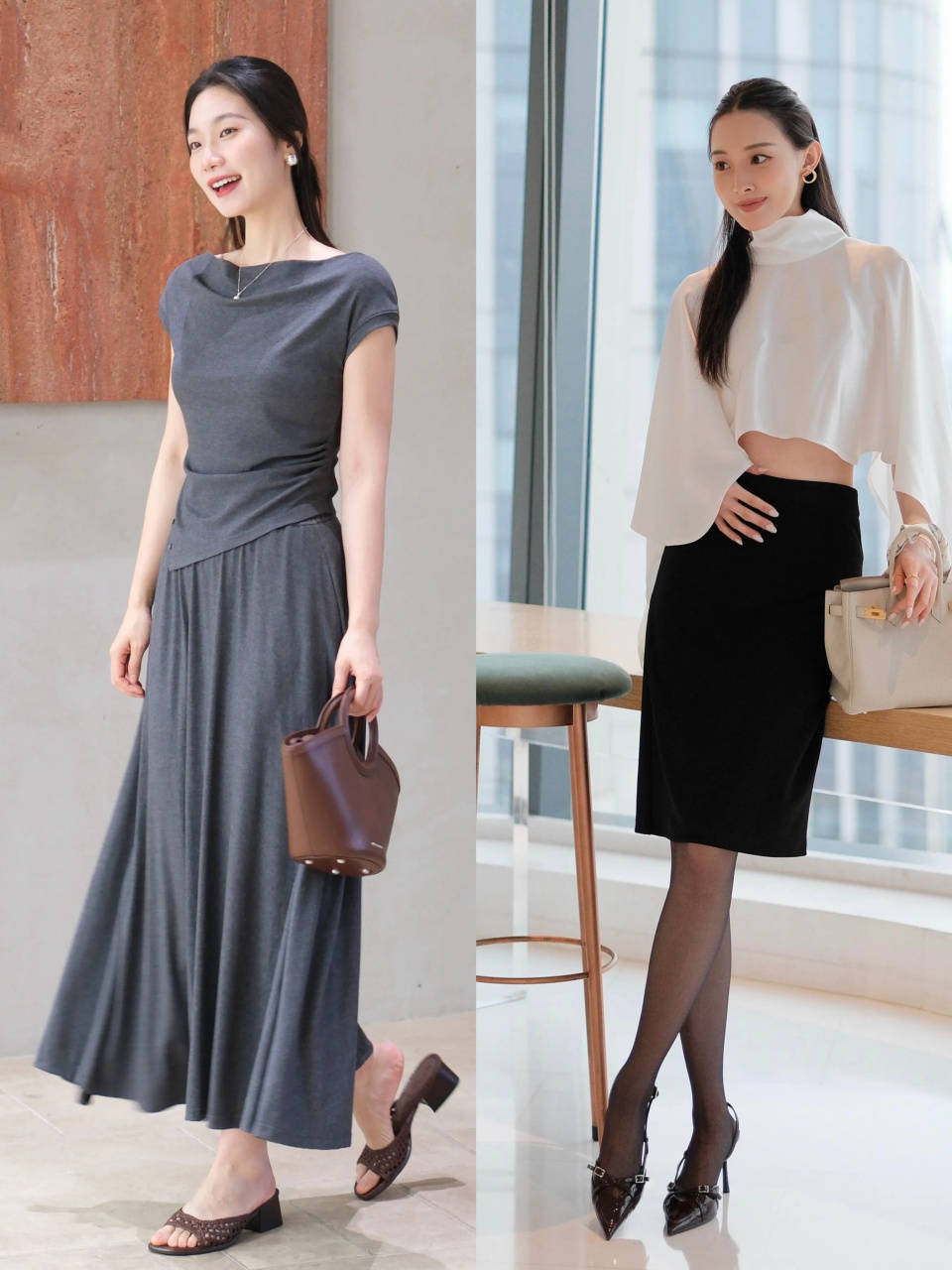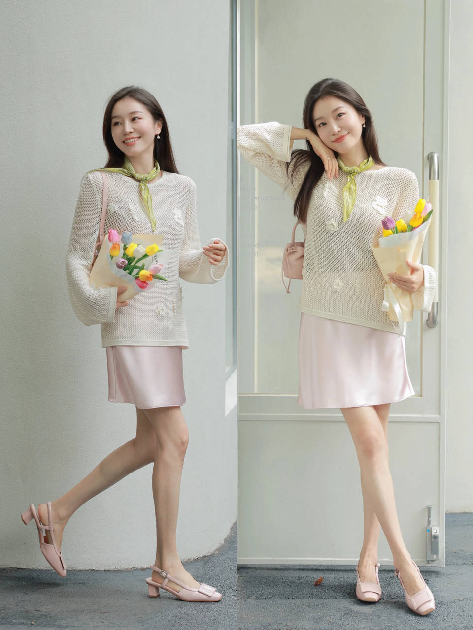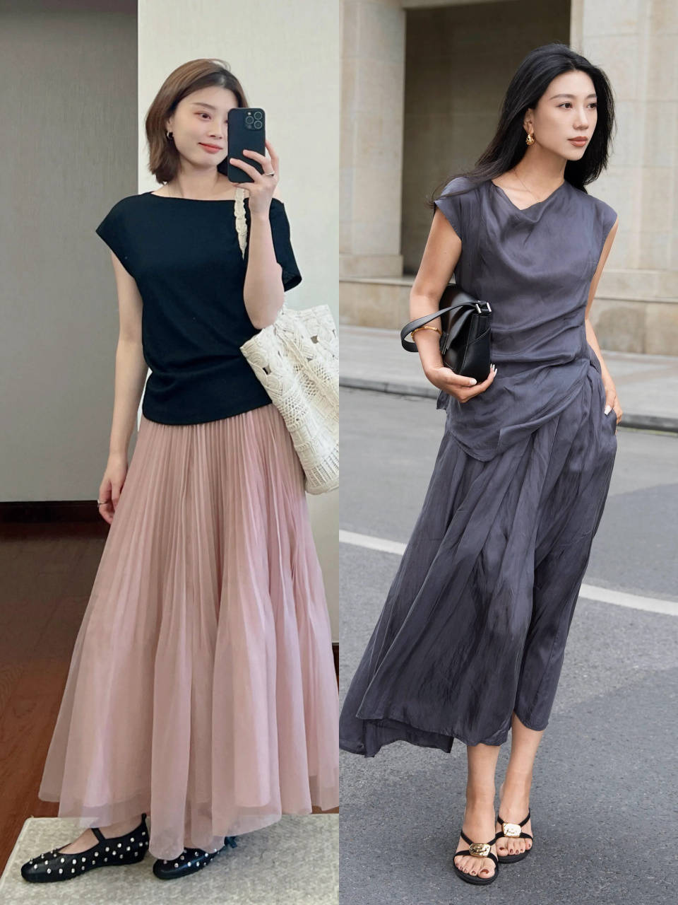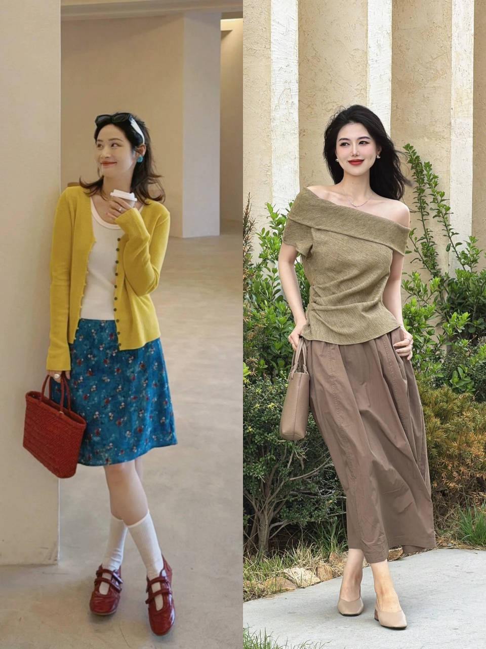 top②:春夏穿“半裙+低跟鞋”,打破呆板感
