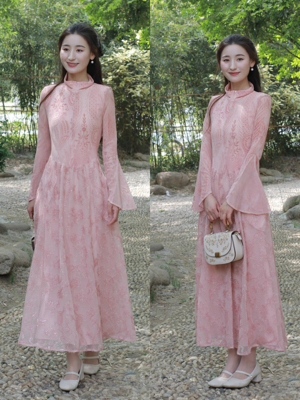 若是小个子女生长相甜美,这时不妨选择一双圆润鞋头的粗跟鞋玛丽珍,穿在脚上很温柔可爱,衬得整个人甜美又俏皮,再配上一条粉色的印花小众裙装上身效果,自带清甜元气少女感。
